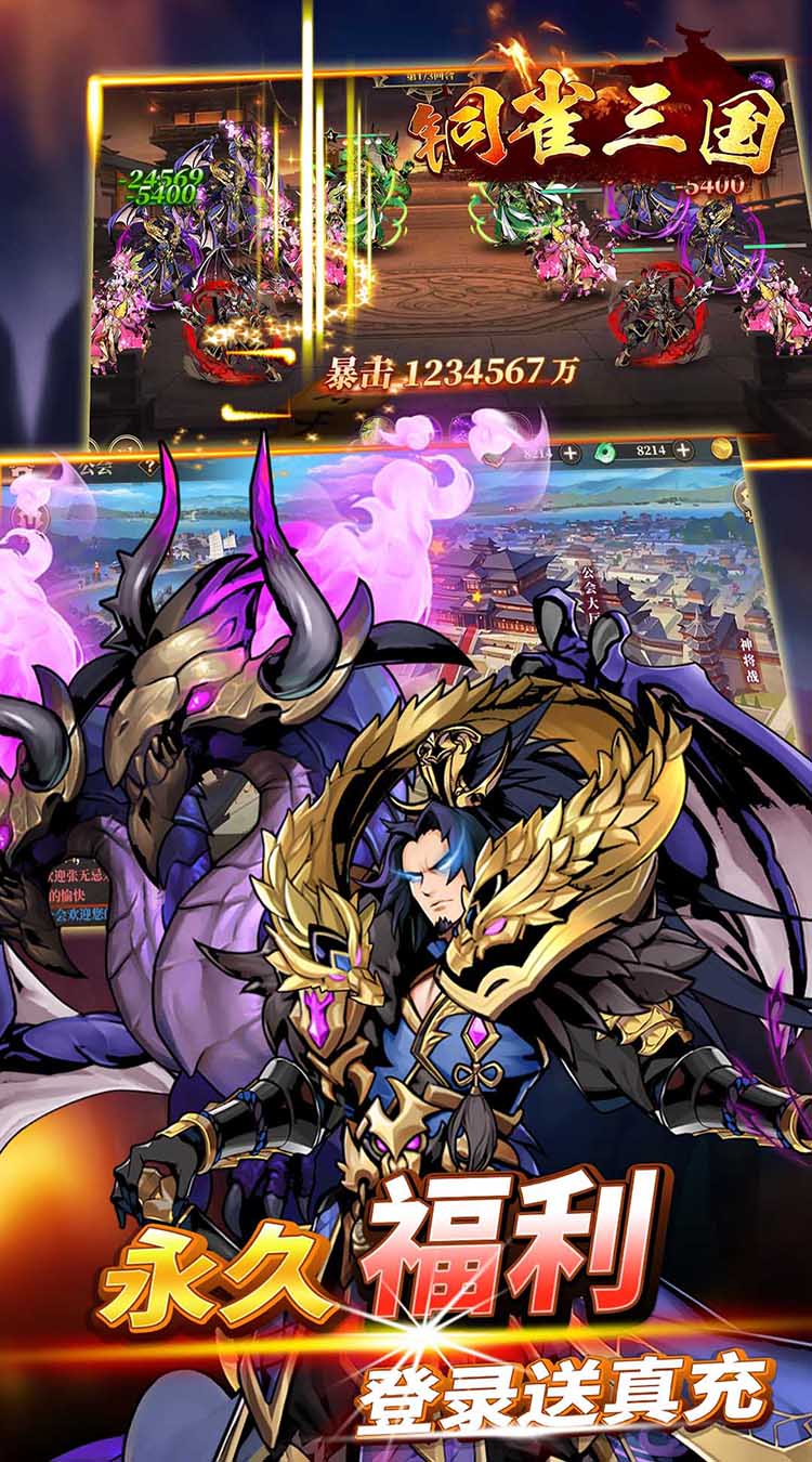 《铜雀三国》是一款三国题材的横版卡牌手游。游戏主角在神秘的三国世界闯荡,会遭遇一系列的神秘关卡和各种强大的敌人。本作包含激情炫酷的战斗,个性鲜明的三国名将,史诗感炸裂的三国城池攻防战,横扫千军的武将战技以及造型各异的绝世神兵和各种奇珍异兽等。随着在不断探索深入,主角终会终会拼杀出属于自己的道路,最终带领自己组建的部队登临顶峰。